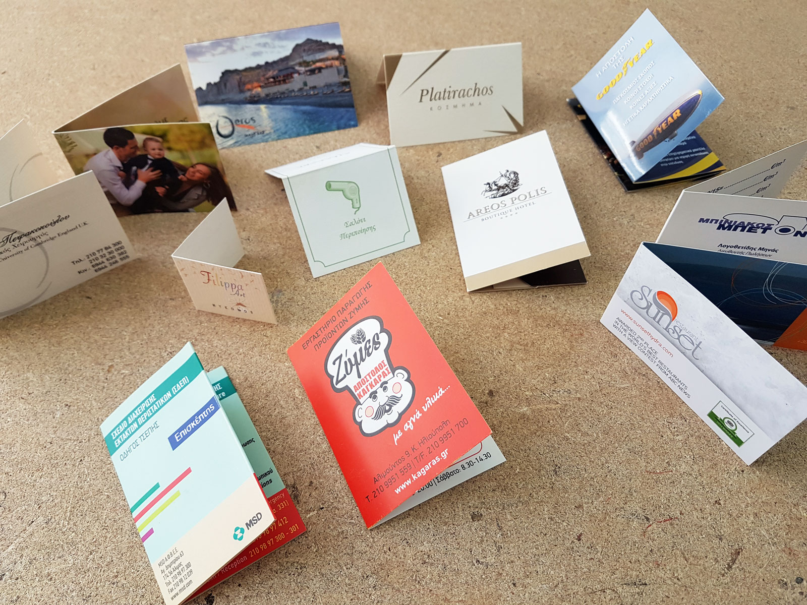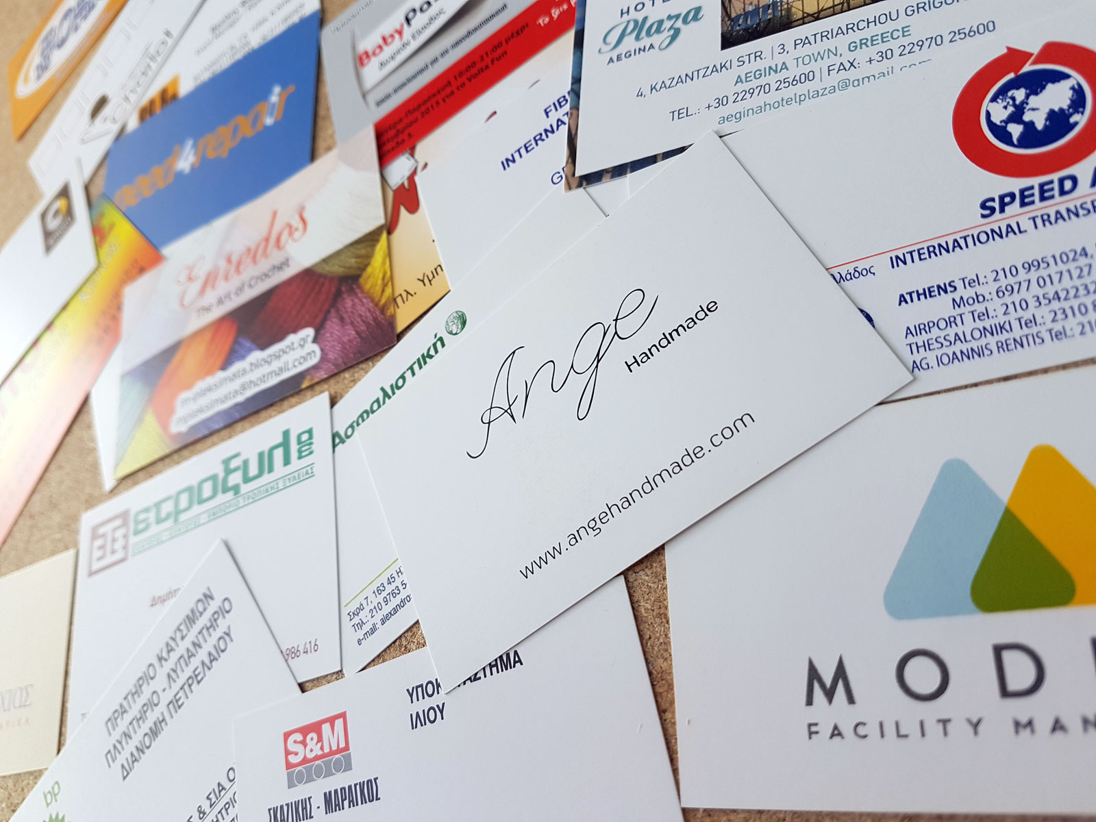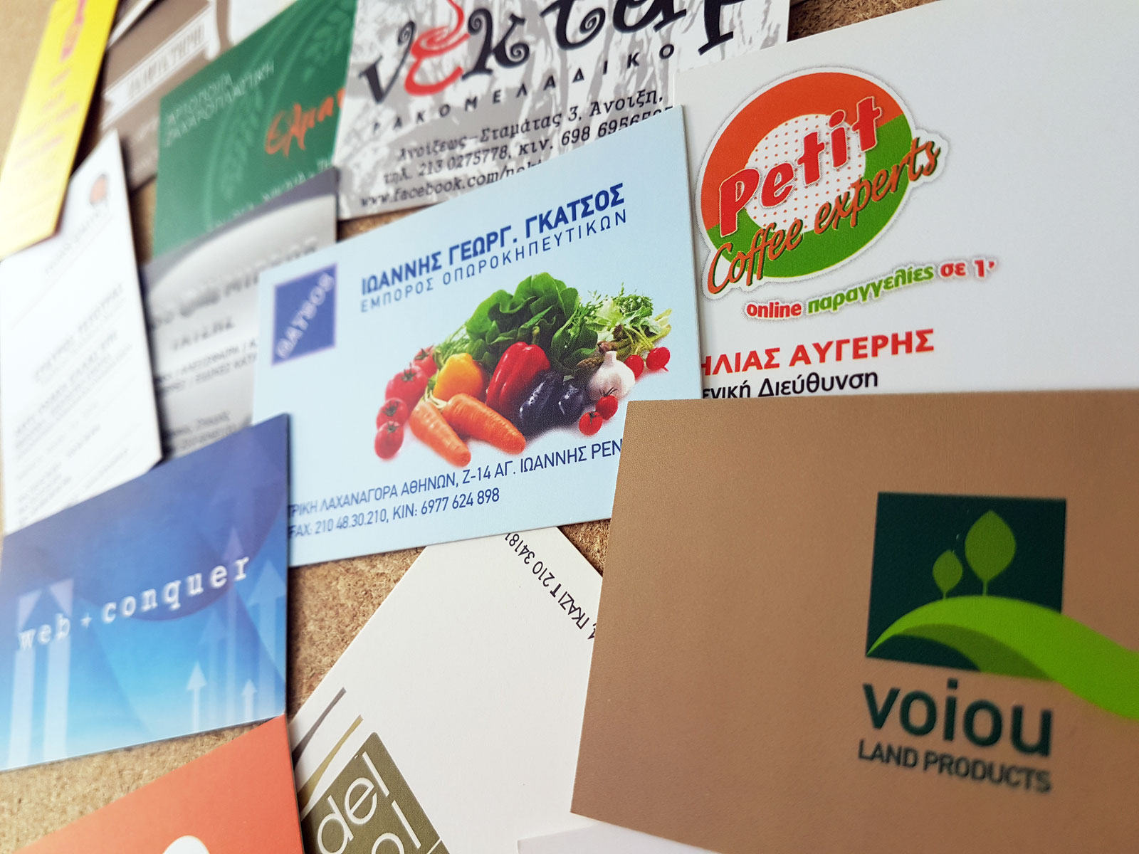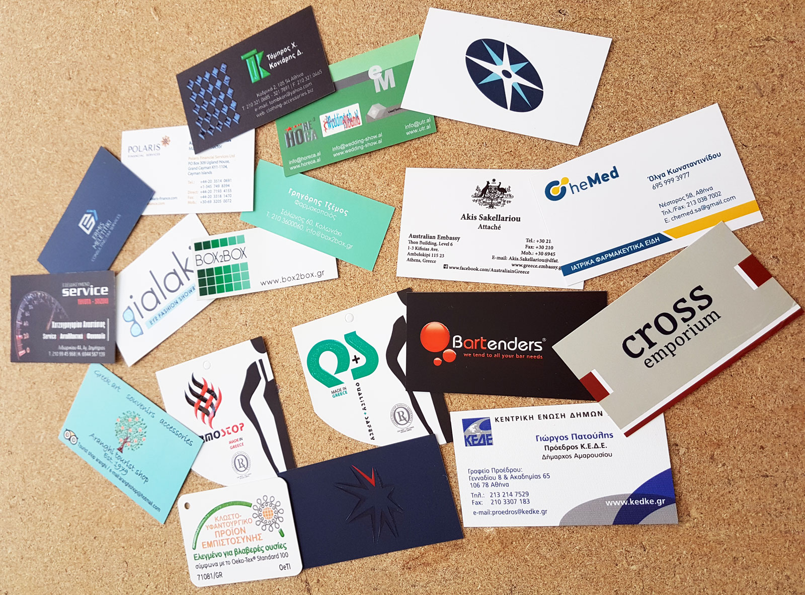 ΑCommon cardboard type, gloss or matte film laminated, special & luxury paper cards, luxury & special effects cards, eco paper cards, extra volume cardboard double or triple laminated cards, plastic cards, etc.