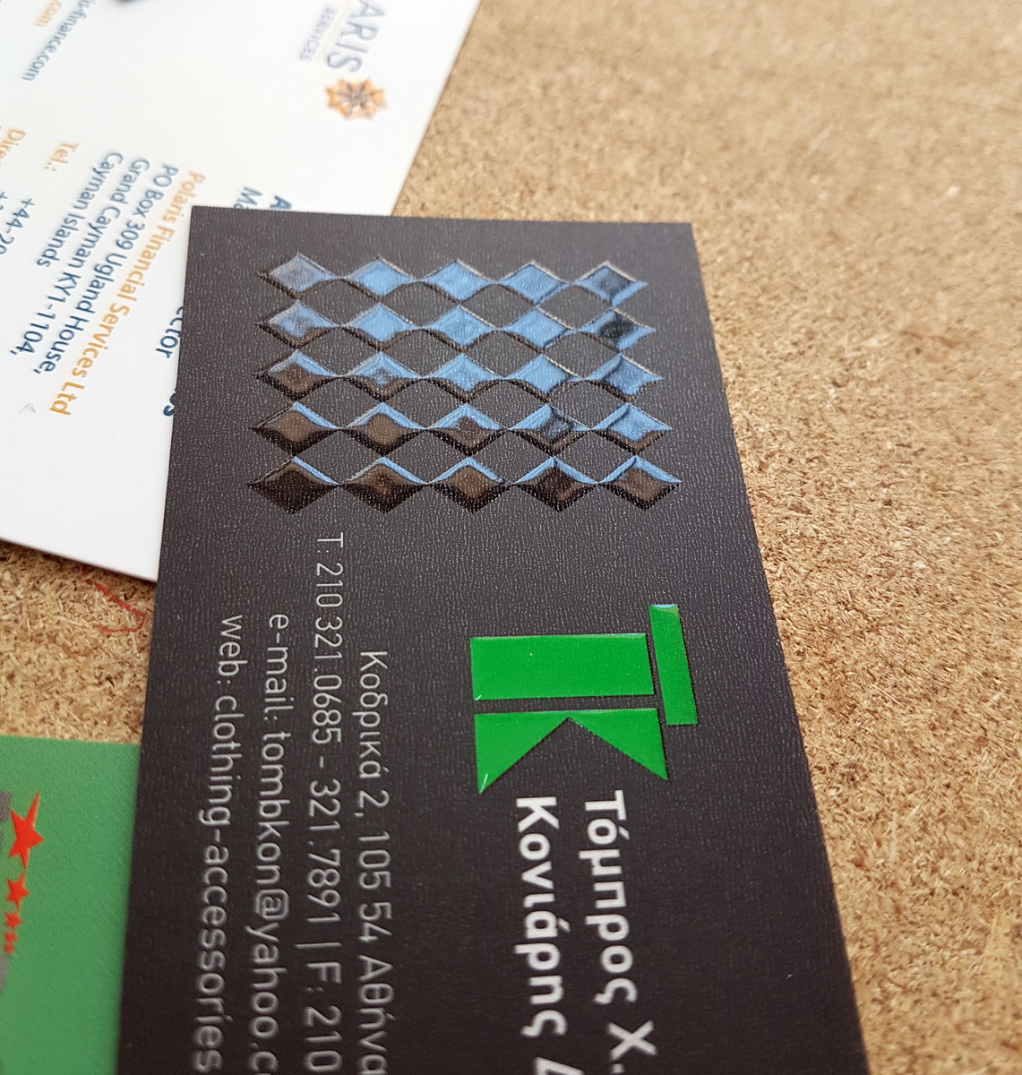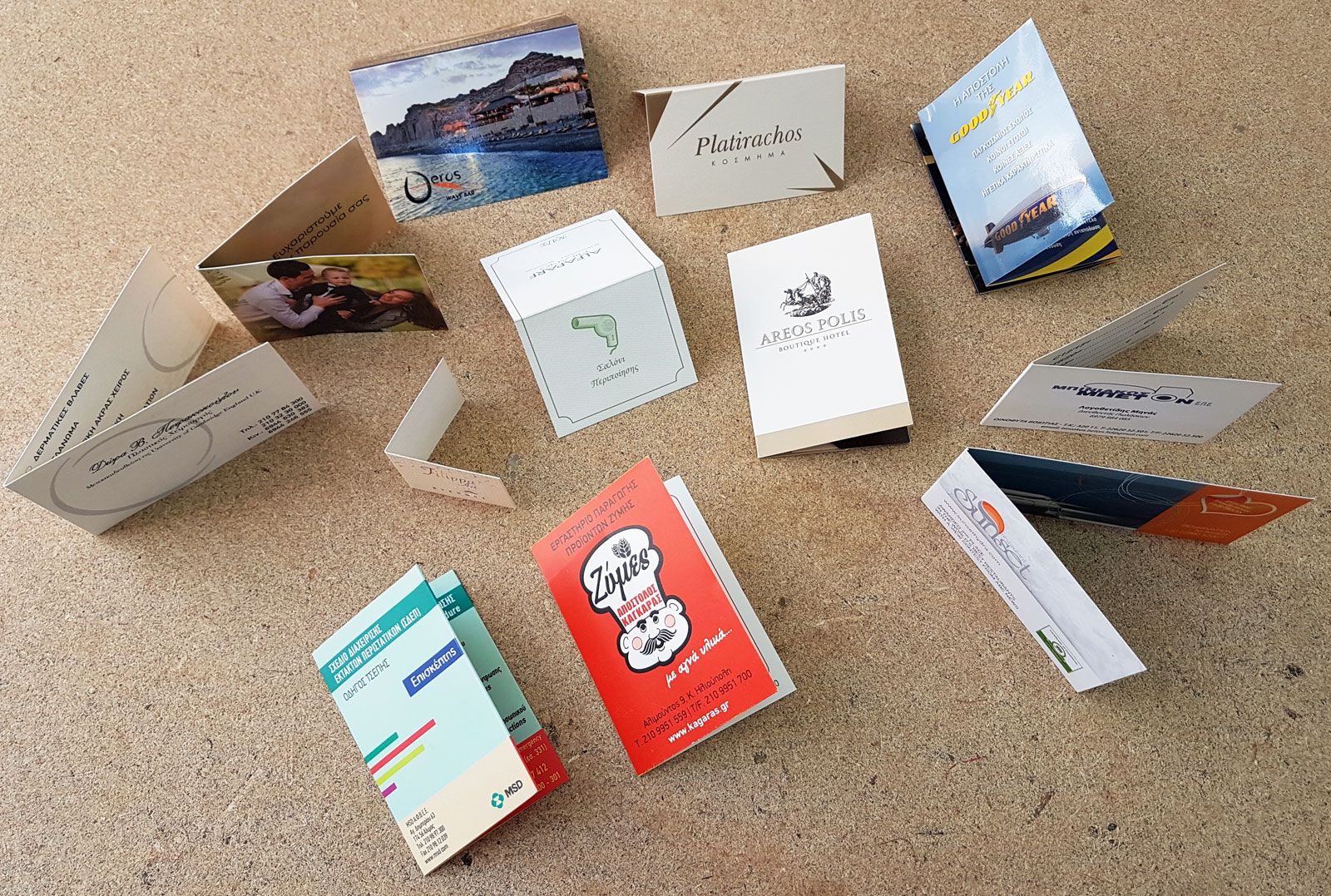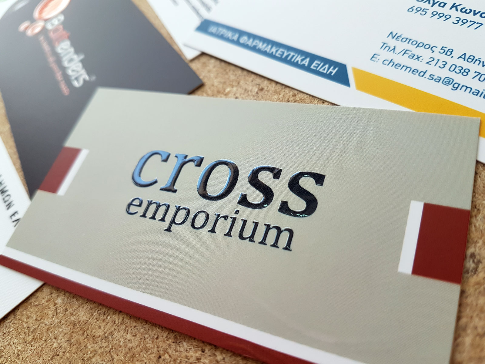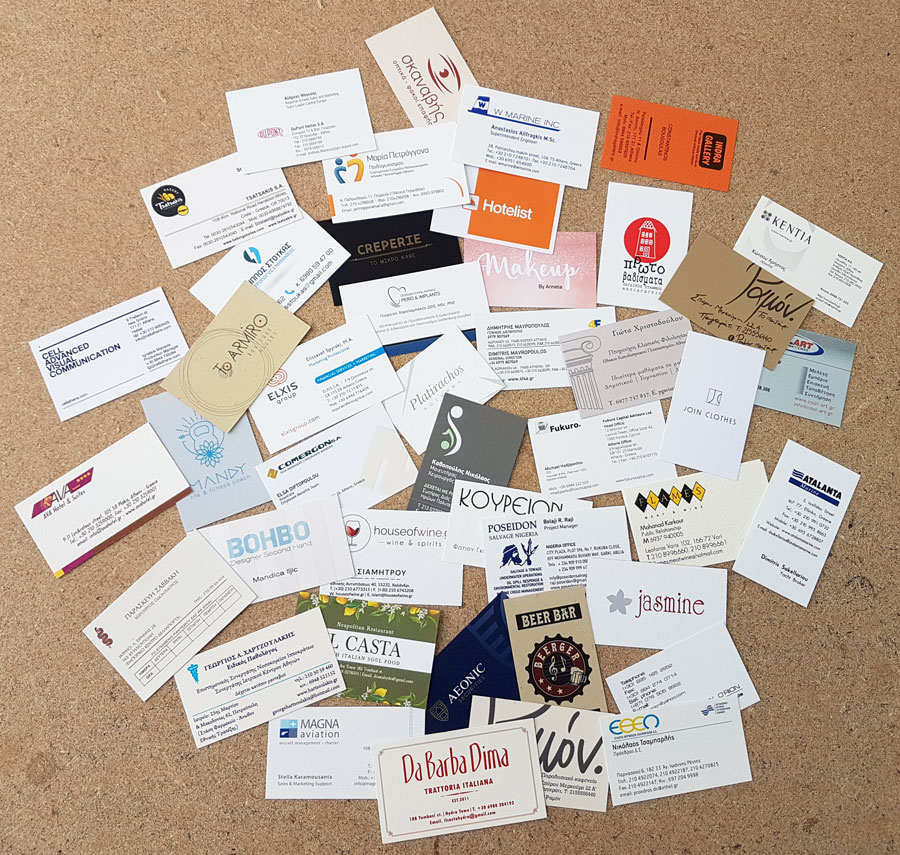 ΑCommon cardboard type, gloss or matte film laminated, special & luxury paper cards, luxury & special effects cards, eco paper cards, extra volume cardboard double or triple laminated cards, plastic cards, etc.