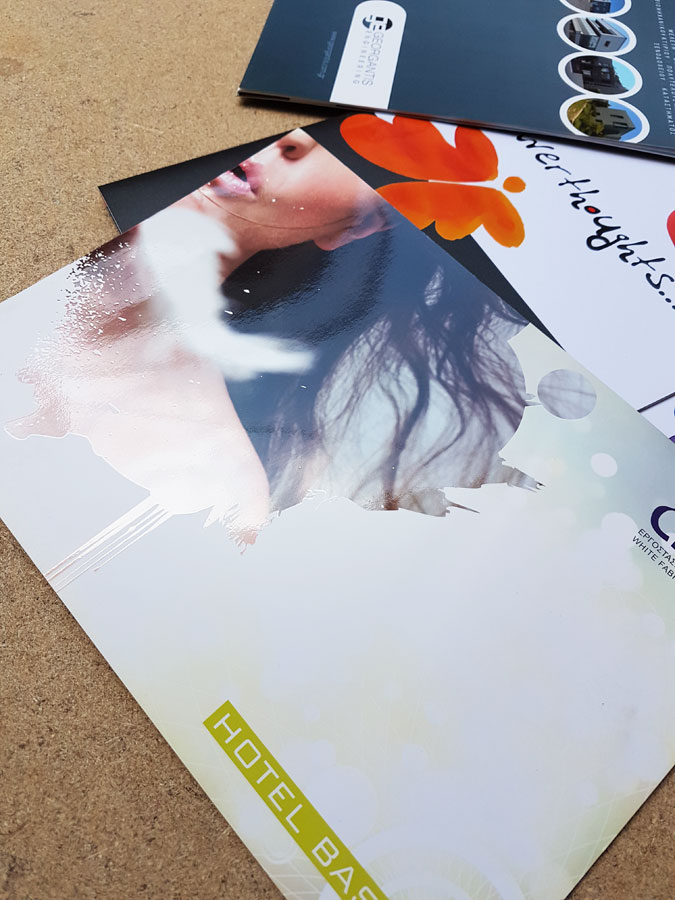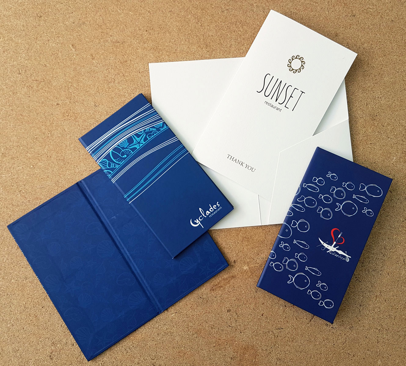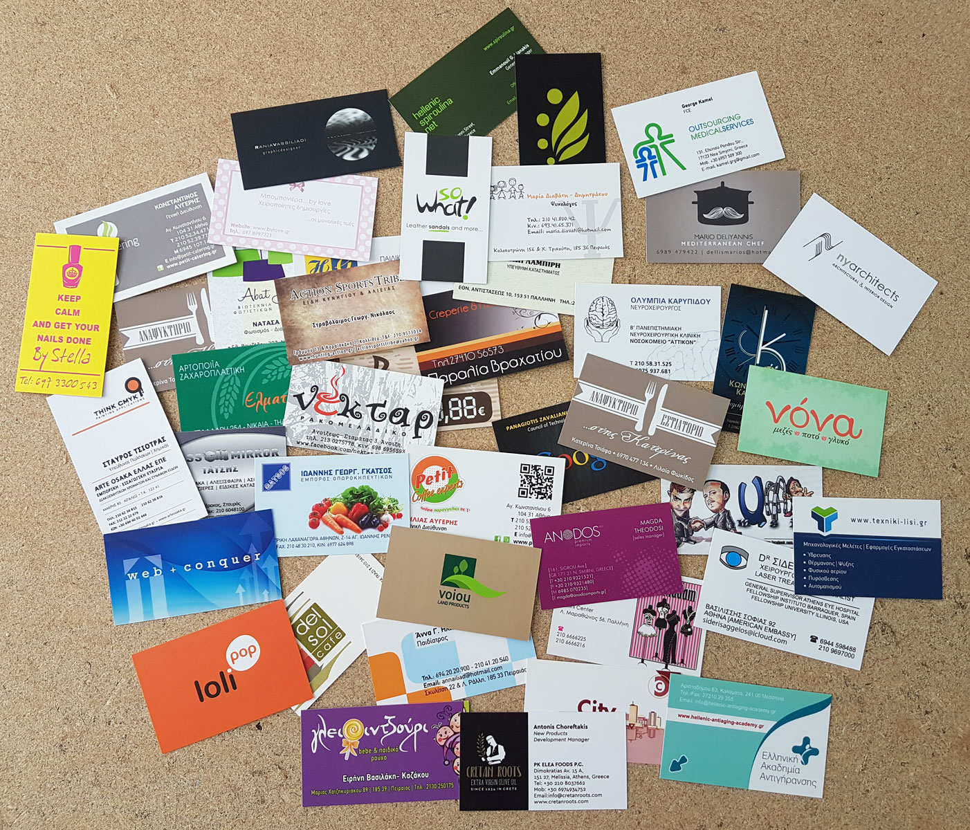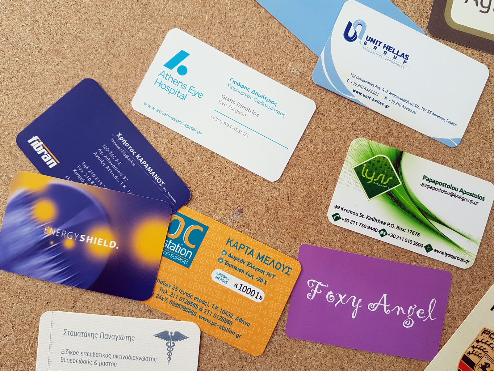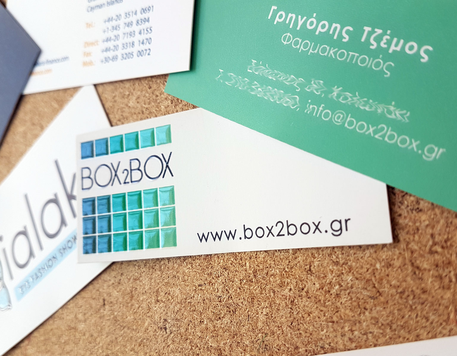 ΑCommon cardboard type, gloss or matte film laminated, special & luxury paper cards, luxury & special effects cards, eco paper cards, extra volume cardboard double or triple laminated cards, plastic cards, etc.