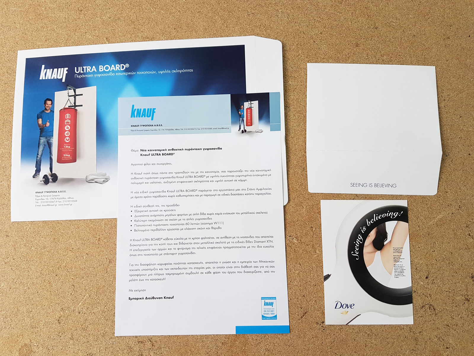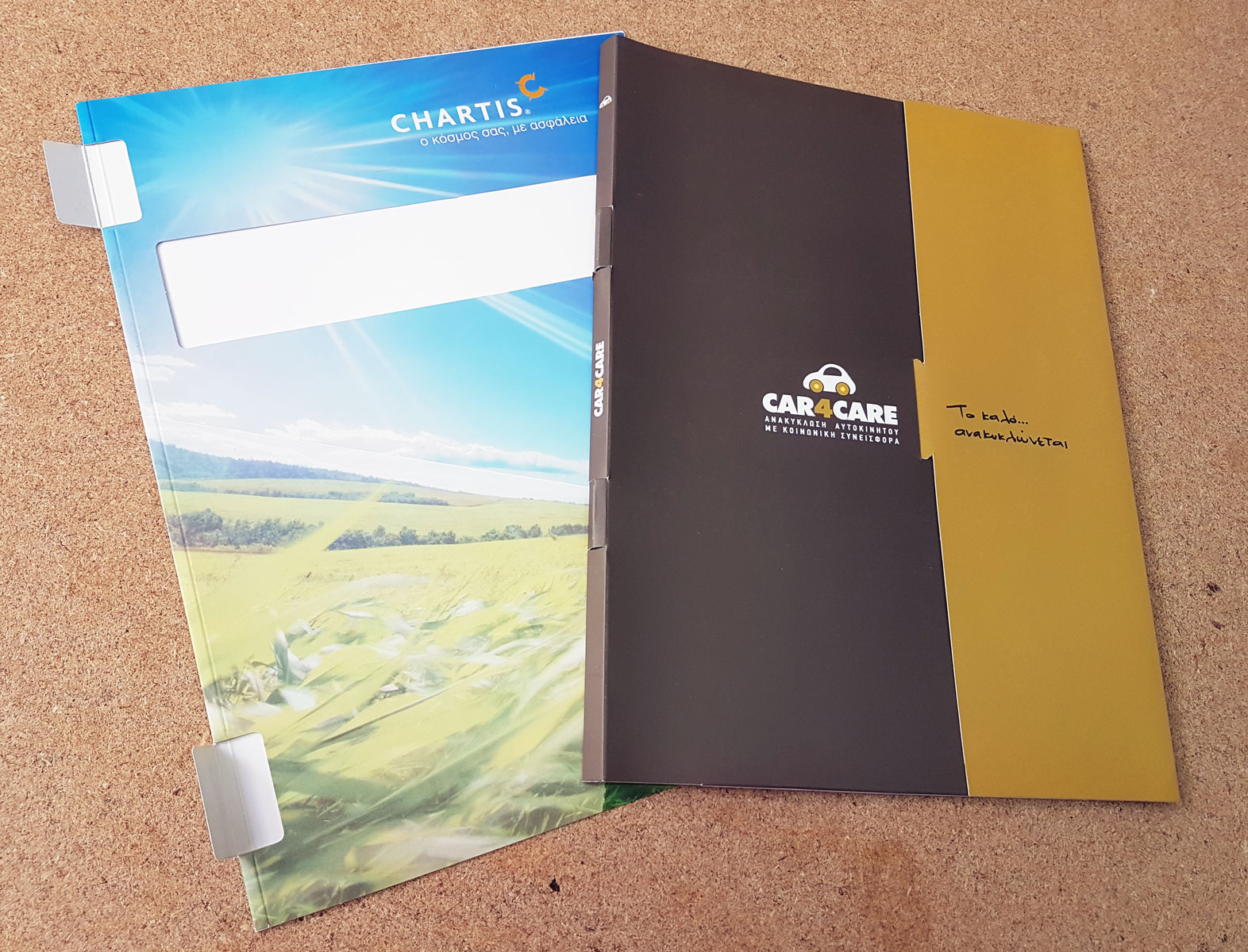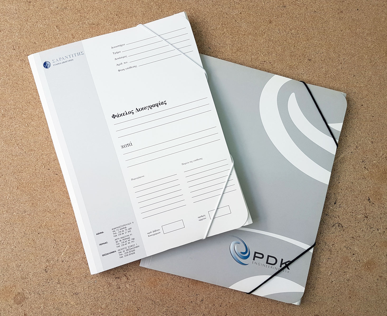 Επίσης, τυπώνουμε σακούλες 23X32 για την αποστολή ανοιχτών Επιστολών Α4, αλλά και Folders σε διαστάσεις Α4 και Α5 για πολλαπλά έγγραφα, συμβόλαια κλπ